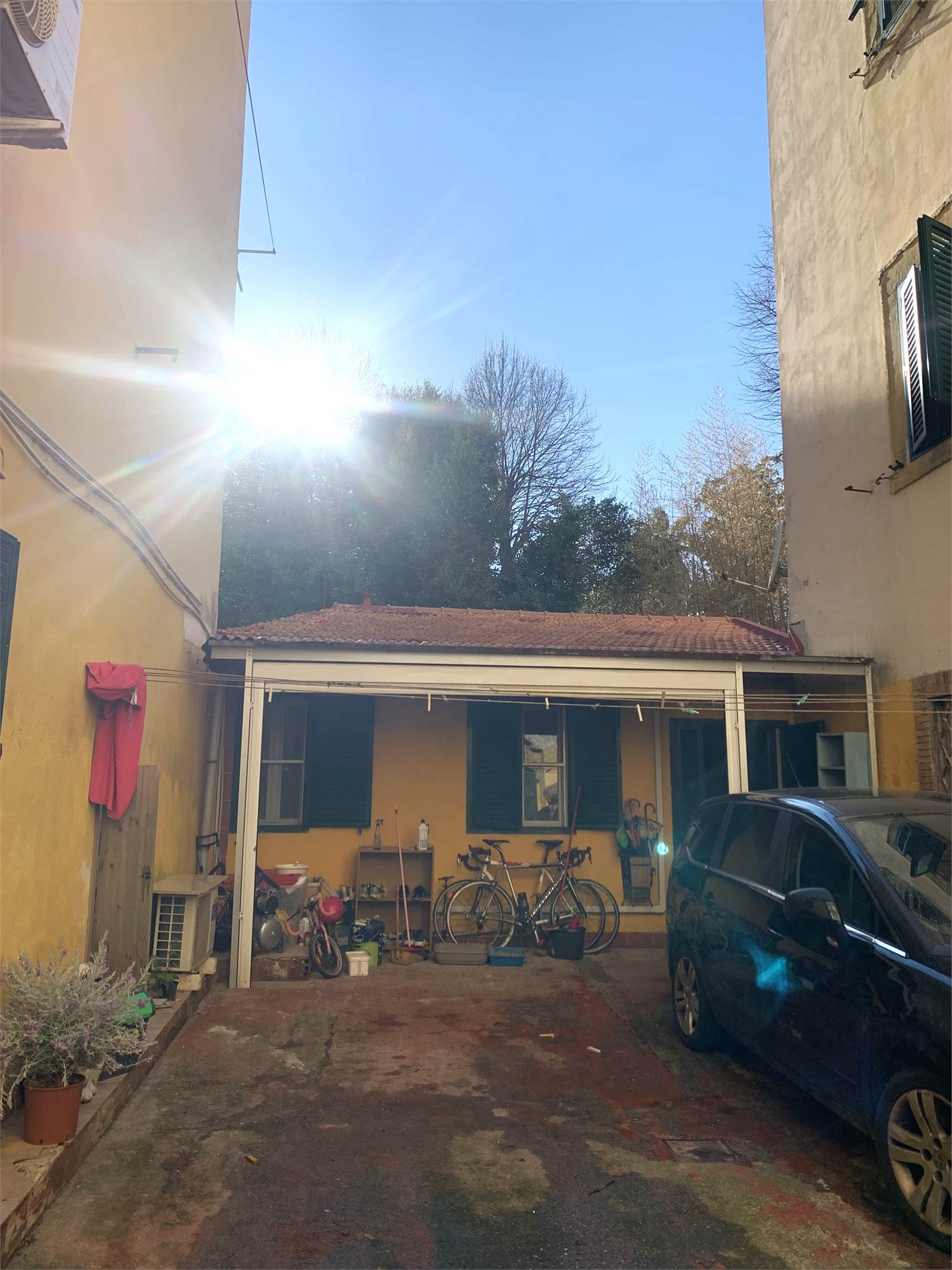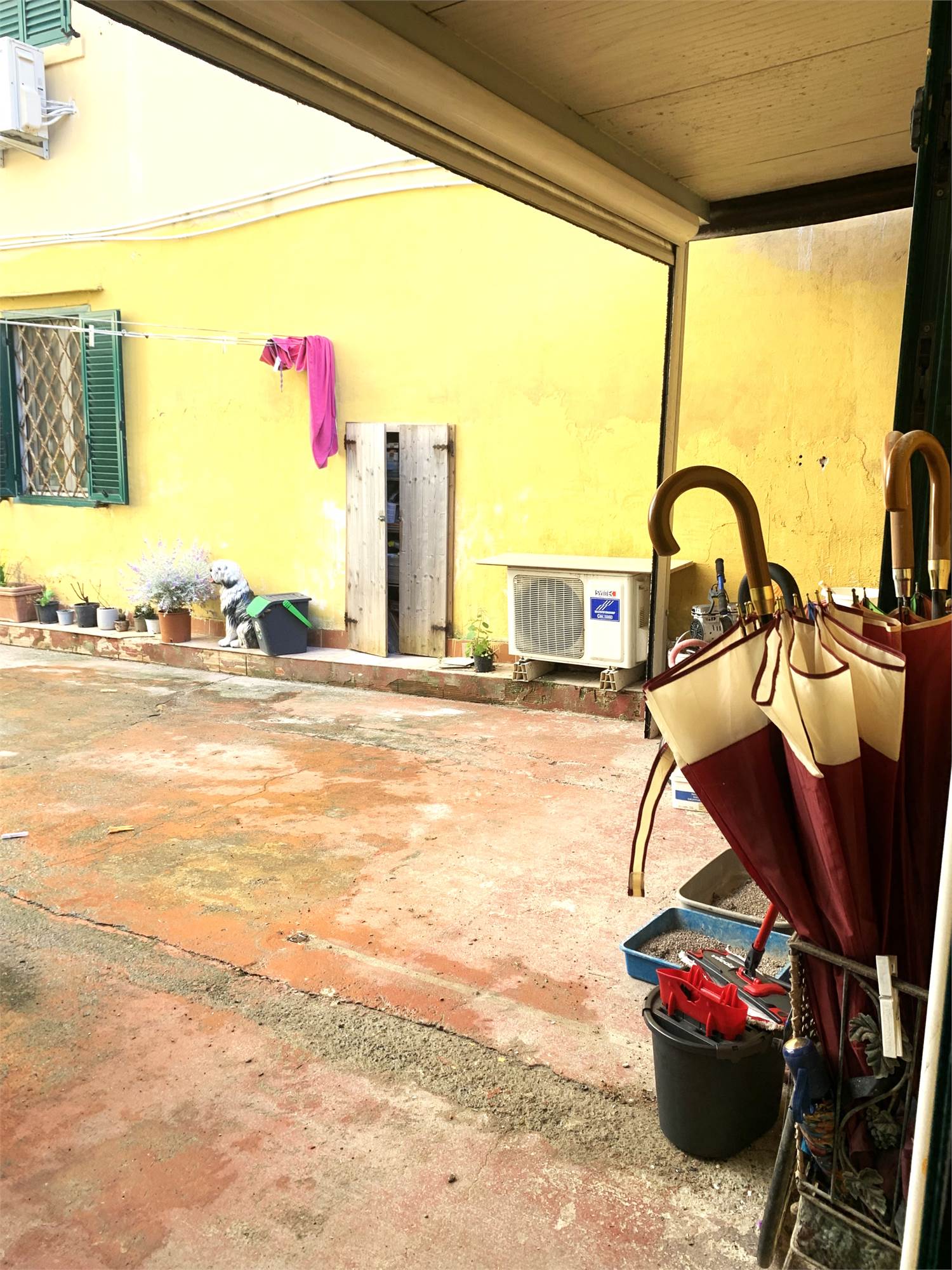 Un piccolo locale tecnico/lavanderia esterno sul cortile.